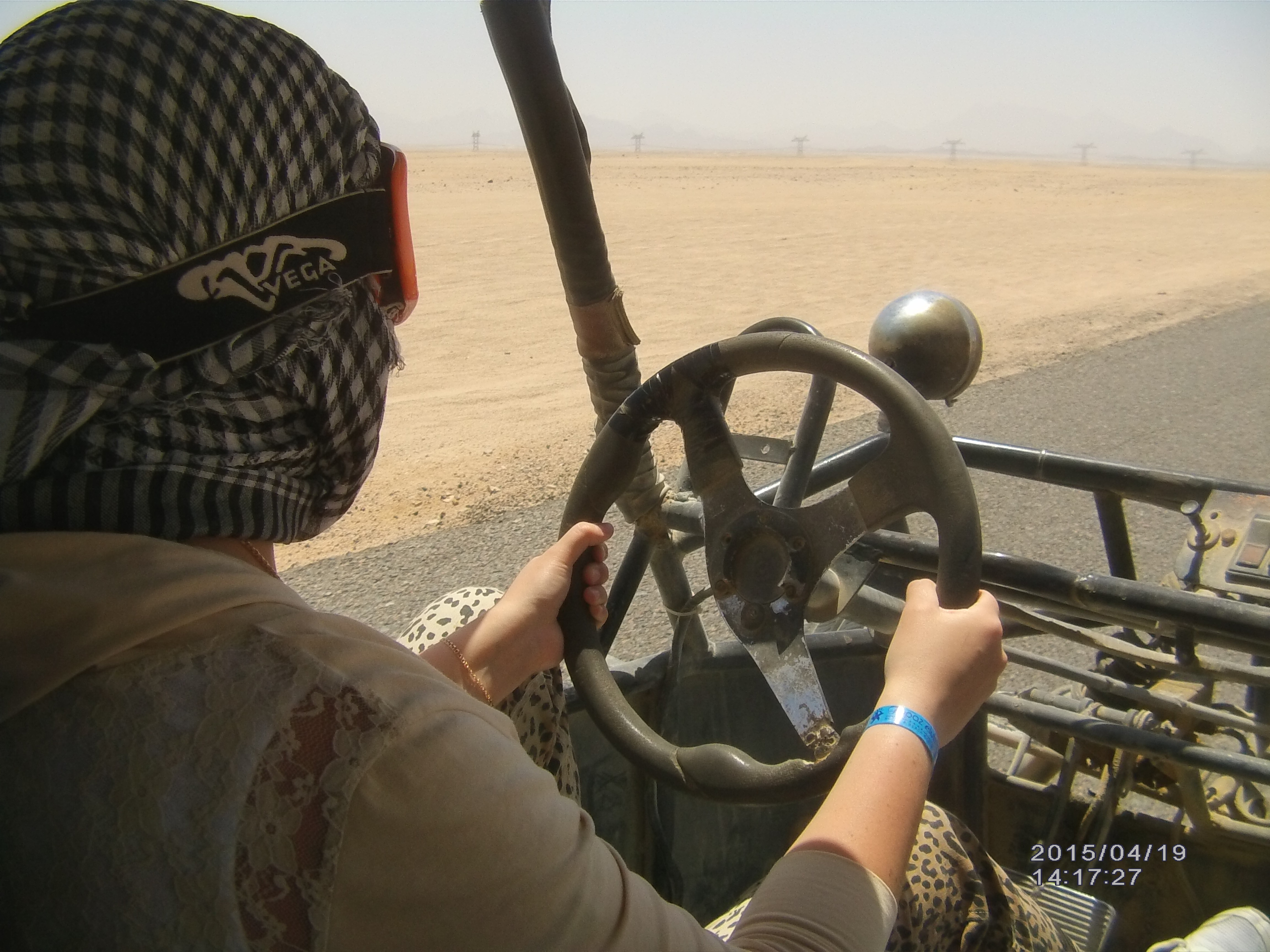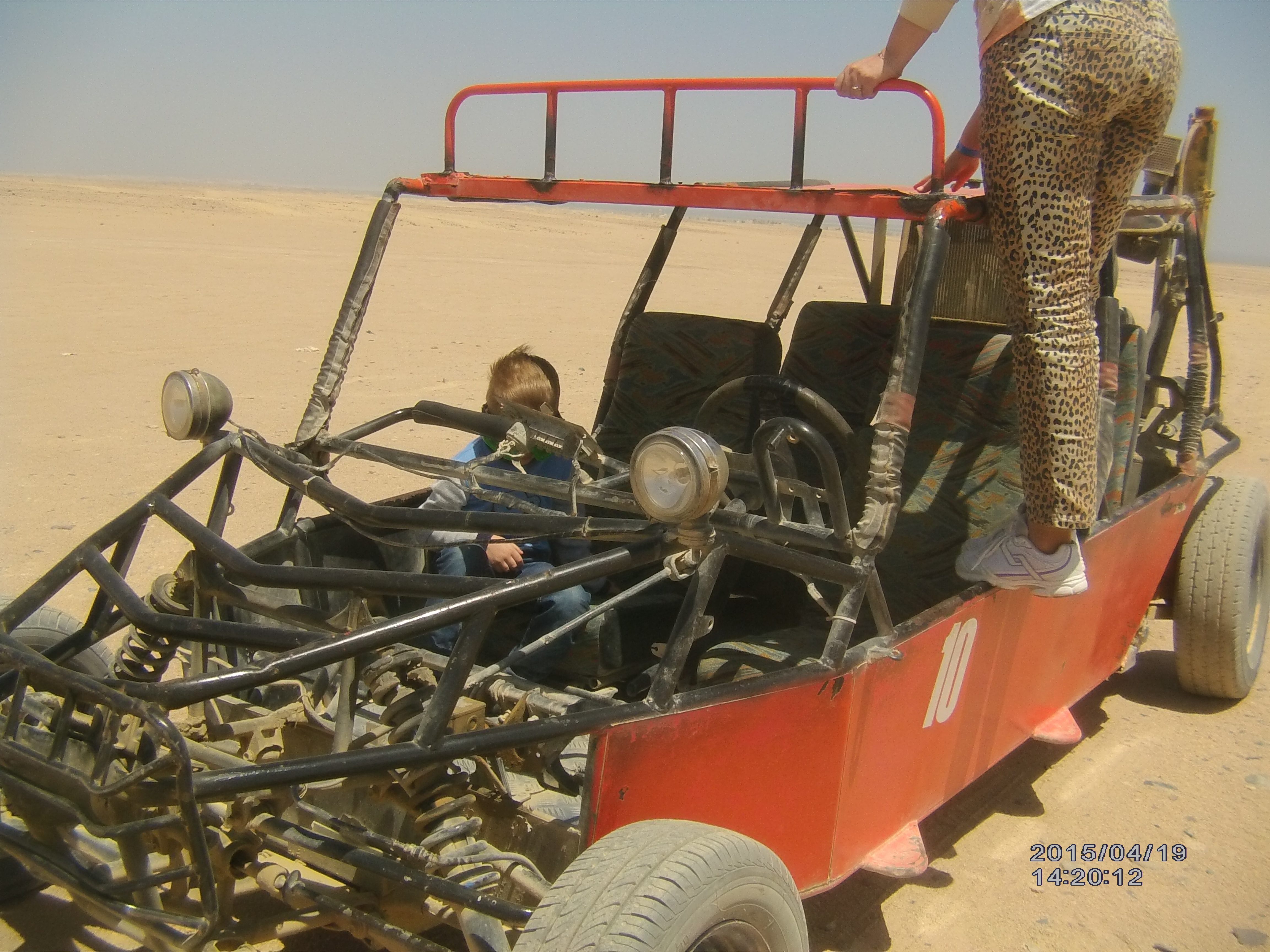 Сафари — выезд в 8 утра, приезд в отель — примерно в 14:30. Везут на автобусе в «сафари парк». Там дают бесплатную арафатку (тут-же помогают её одеть). Предлагают бесплатно чай. Можно купить мороженое. В экскурсию входит: 1) везут на джипах в деревню бедуинов, где показывают их быт, рассказывают их обычаи. Там-же небольшая поездка на верблюдах, бедуин который ведет верблюда бесплатно фотографирует. Там-же посещение мини-зоопарка, в котором живут в основном змеи. Там-же бабка-бедуинка пекет при вас лепешку и гид дает её всем попробовать. С бабкой можно сфотографироваться. Она постоянно намекает что хочет доллар, но это не обязательно. Там-же «аптека бедуинов» — предлагают купить «народные лекарства». Там-же «ткацкая фабрика бедуинов» — предлагают купить коврики. 2) Поездка на 4-х местных «баггах». В пути останавливаются 4 раза, чтоб водители могли поменяться и «порулить».Примерно 30 минут. 3) Поездка на квадроциклах — примерно 40 минут.