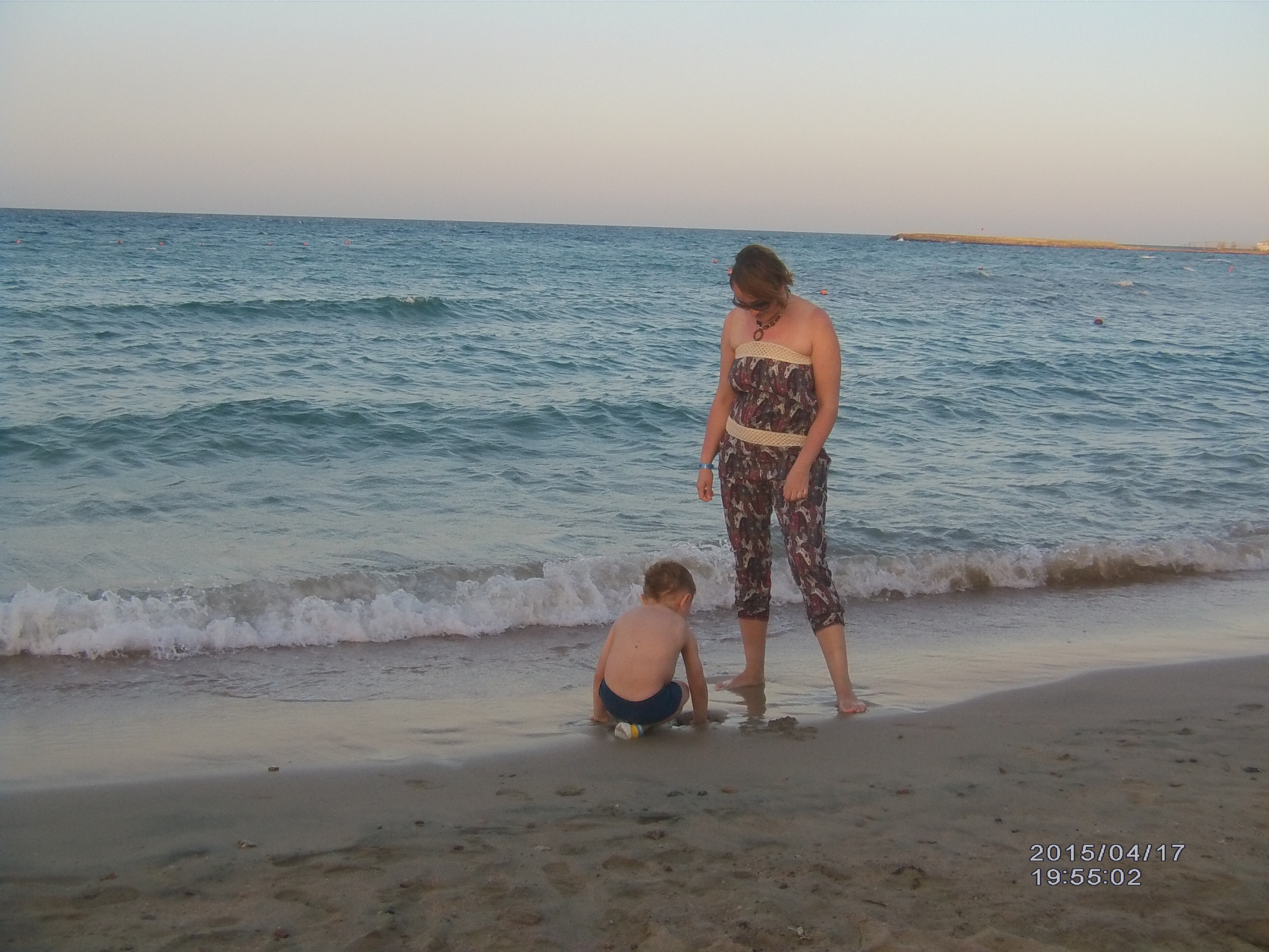 Начало апреля в Хургаде — сезон холодных ветров. Соотвественно днем тепло (примерно +27), но немного гадкий ветер. Вечером после захода солнца — холодно, приходилось одевать куртку. 19 Апреля ветер стих, и наступила ЖАРА. К сожалению не засекал сколько градусов по цельцию, но по ощущениям больше 35, а в условиях отсутствия ветра, это пекло, при котором днём не хочется вылезать из номера. Кроме как покупаться в бассейне или в море.