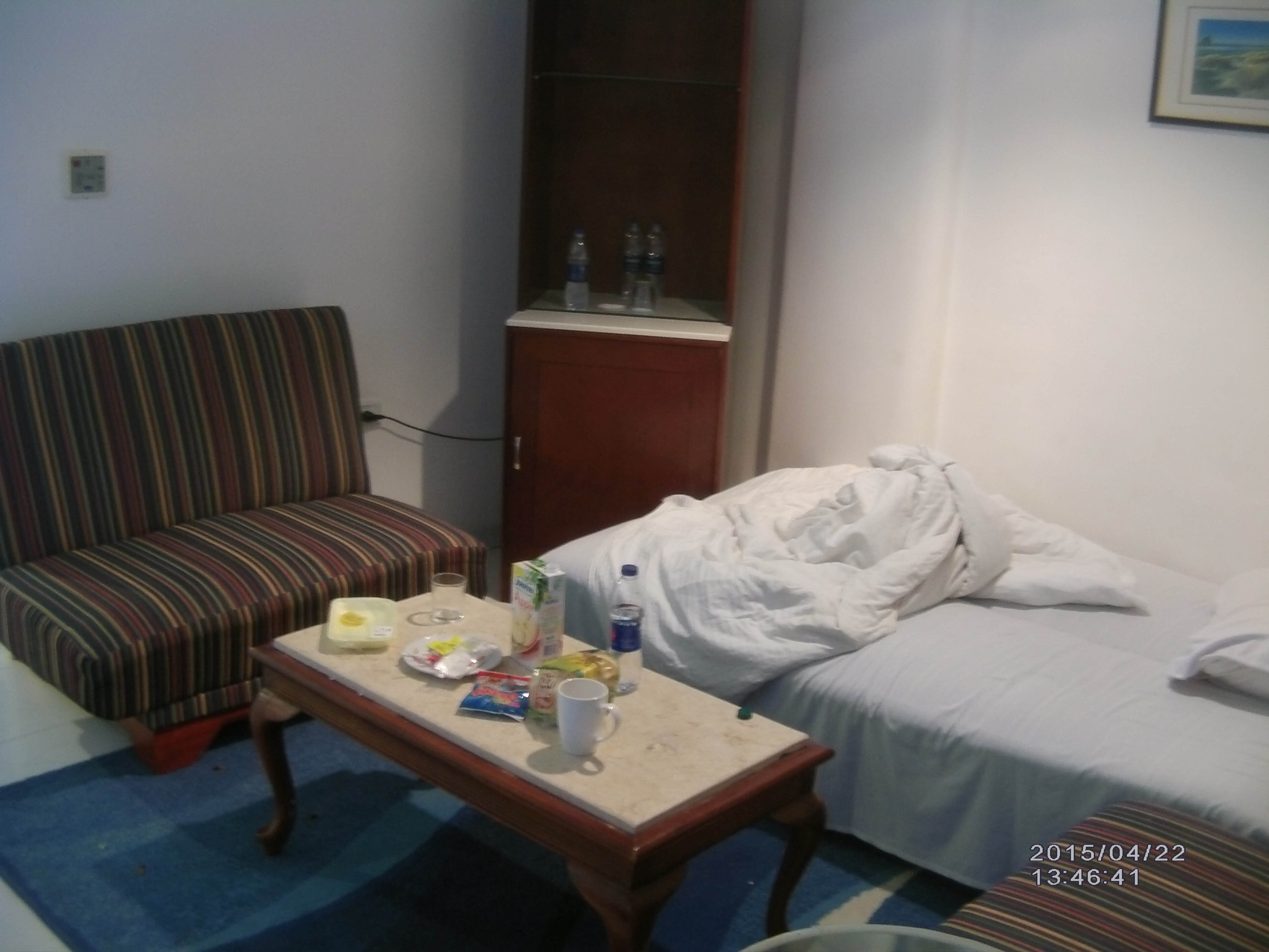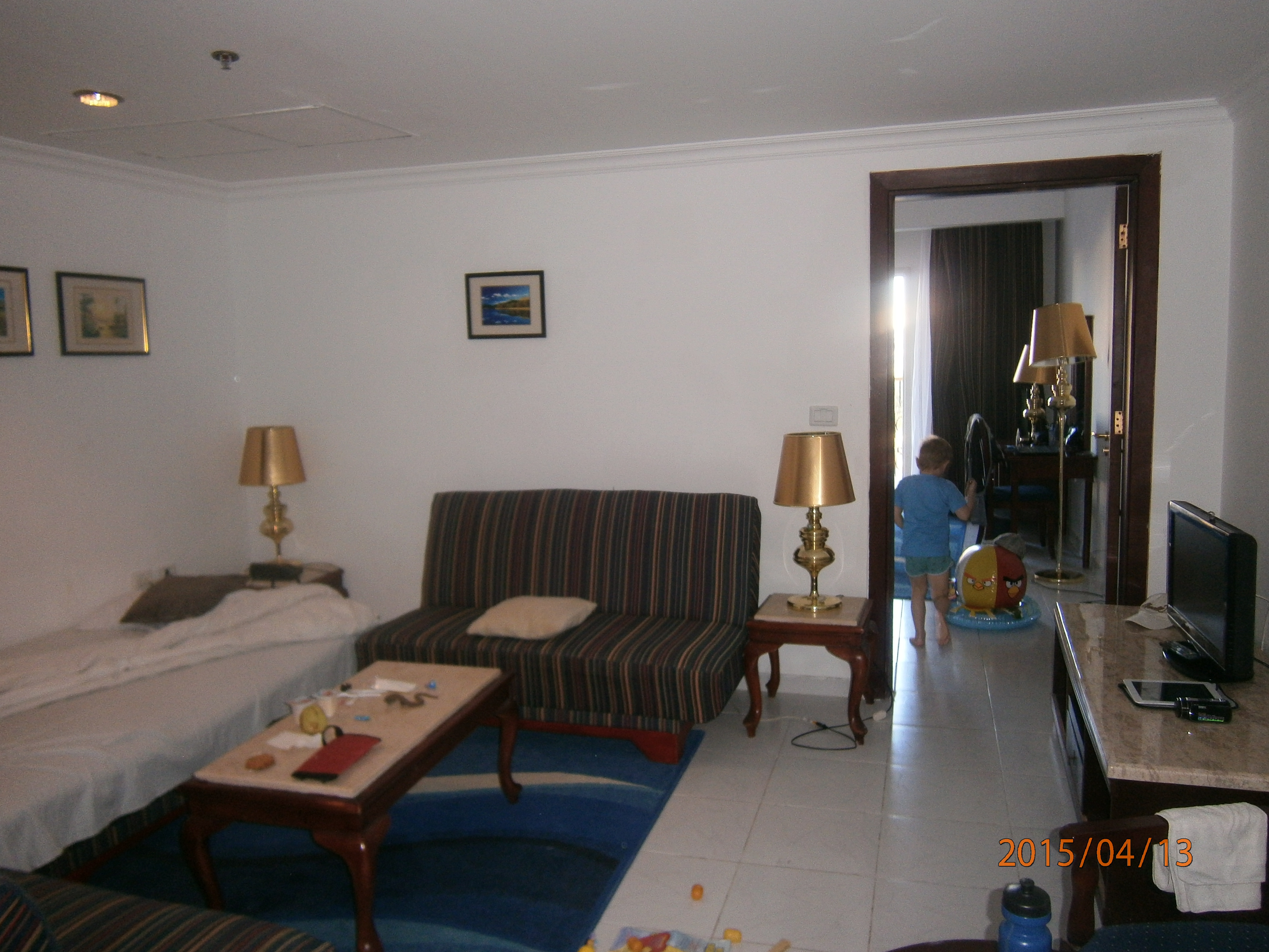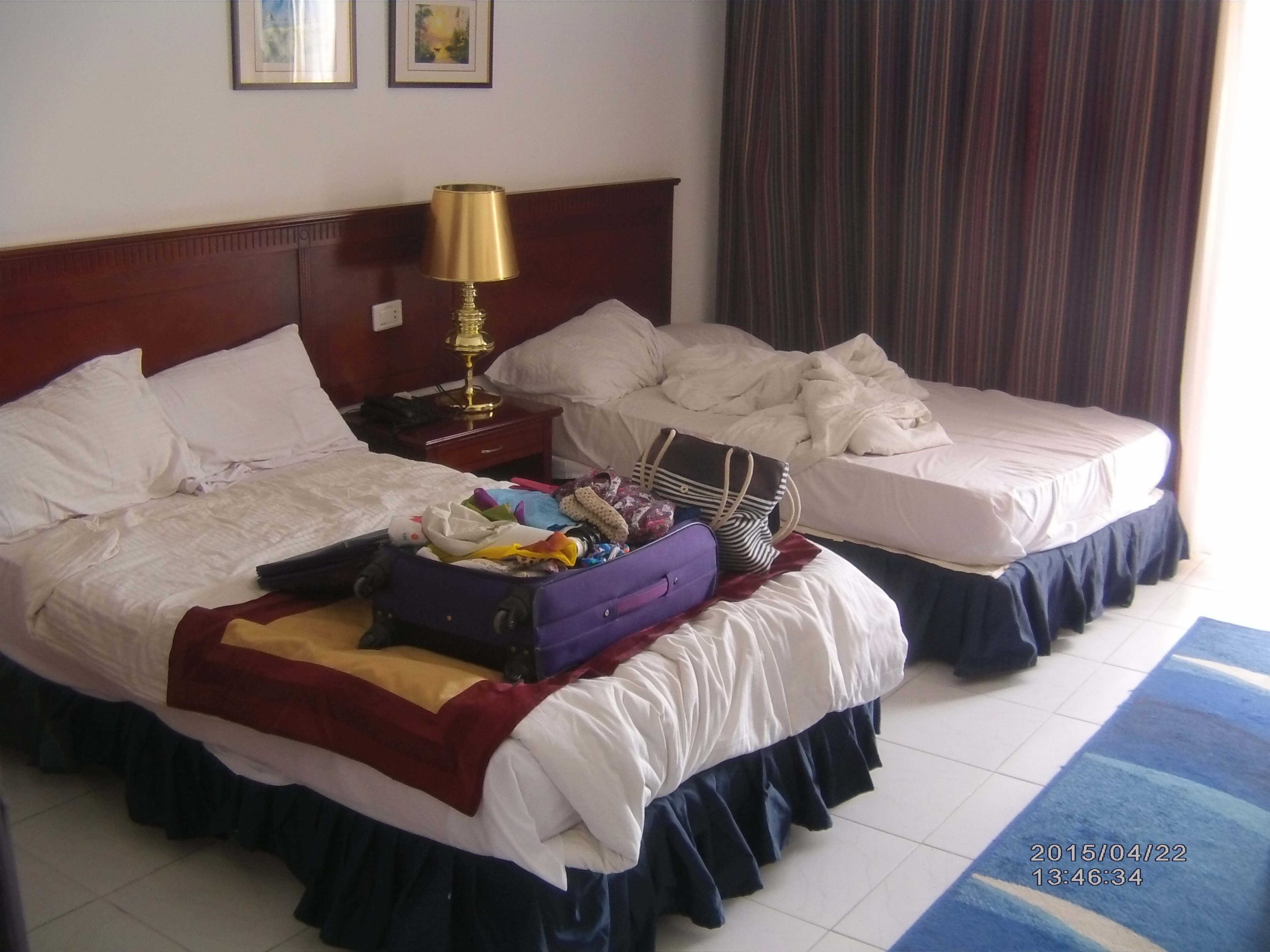 При заселении нам попался номер 317. В Лобби «бой» схватил чемоданы и повел нас к номеру. Ожидал что попросит «чаевых», но не попросил. В принципе к номеру претензий нет. Не первой свежести, но всё работает. 2 комнаты. В обоих телевизор и кондиционер. Сейф,холодильник. Свой балкончик. Каждое утро номер убирается, меняются по необходимости полотенца. Из недостатков — довольно шумно, на верху на крыше вентиляторы от кондиционеров. Но терпимо. Номер открывается карточкой, при потере которой восстановление стоит 19$. Так-же выдается карточка для получения «пляжных полотенец», которые можно брать 9 утра и сдавать до 17:00. Кстати в отеле можно расплачиваться только долларами и фунтами (например за крепкие напитки, мороженное в баре и т.п.). Евро не принимаются. В лавочках в отеле и близлежащих — возьмут и евро, но по курсу 1$=1EUR.